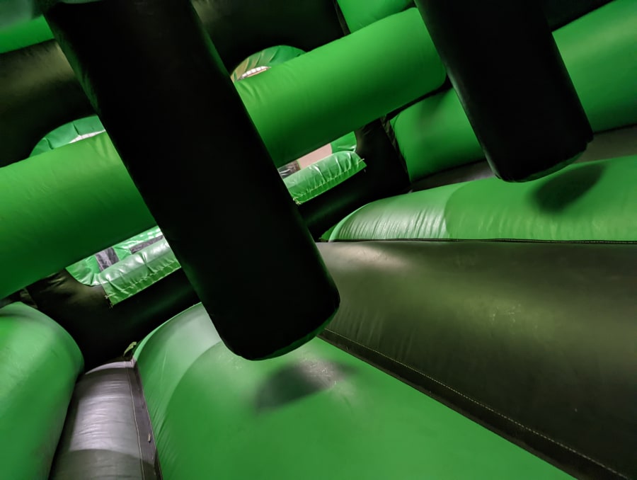 Three part assault course with plenty of obstacles to go over, under and pass through then on to a 15ft crawl through and finally on to a six foot up and over.