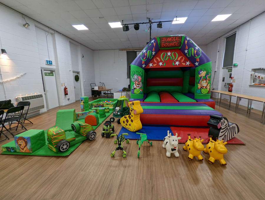 - Jungle Themed 14ft x 12ft Bouncy Castle: The star attraction, featuring bright colors and playful animal designs for endless bouncing fun.