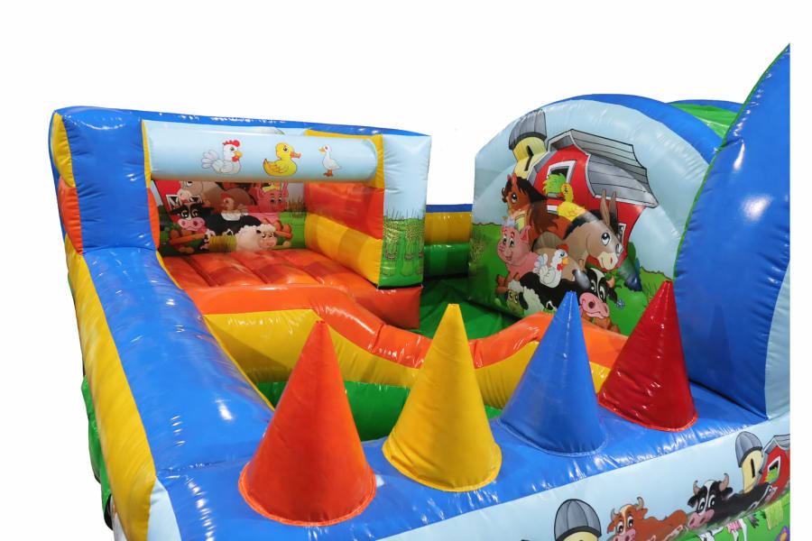 The 15ft x 15ft Animal Farm Toddler Play Park is a compact, vibrant play area designed for toddlers. It combines soft play, a ball pit, a bouncy castle and a slide into one themed unit. Ideal for birthday parties, nurseries and community events. Short setup. Low supervision needed. Big smiles guaranteed. ๐