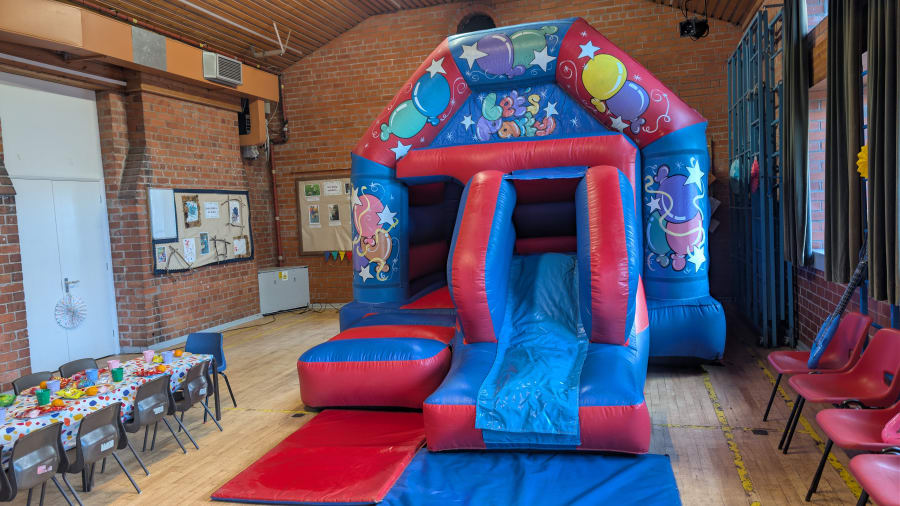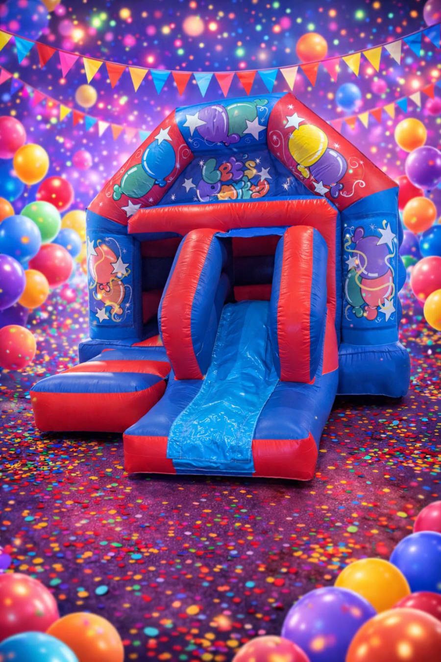We proudly offer bouncy castle hire in North Wales, Cheshire, Flintshire, Denbighshire, and Conwy, ensuring your event is a hit no matter where it's held. Our professional team is dedicated to providing exceptional service, from delivery and setup to ensuring everything runs smoothly during your event. Let us help you create unforgettable memories with the 18ft x 12ft Let's Party Front Slide. 🎪