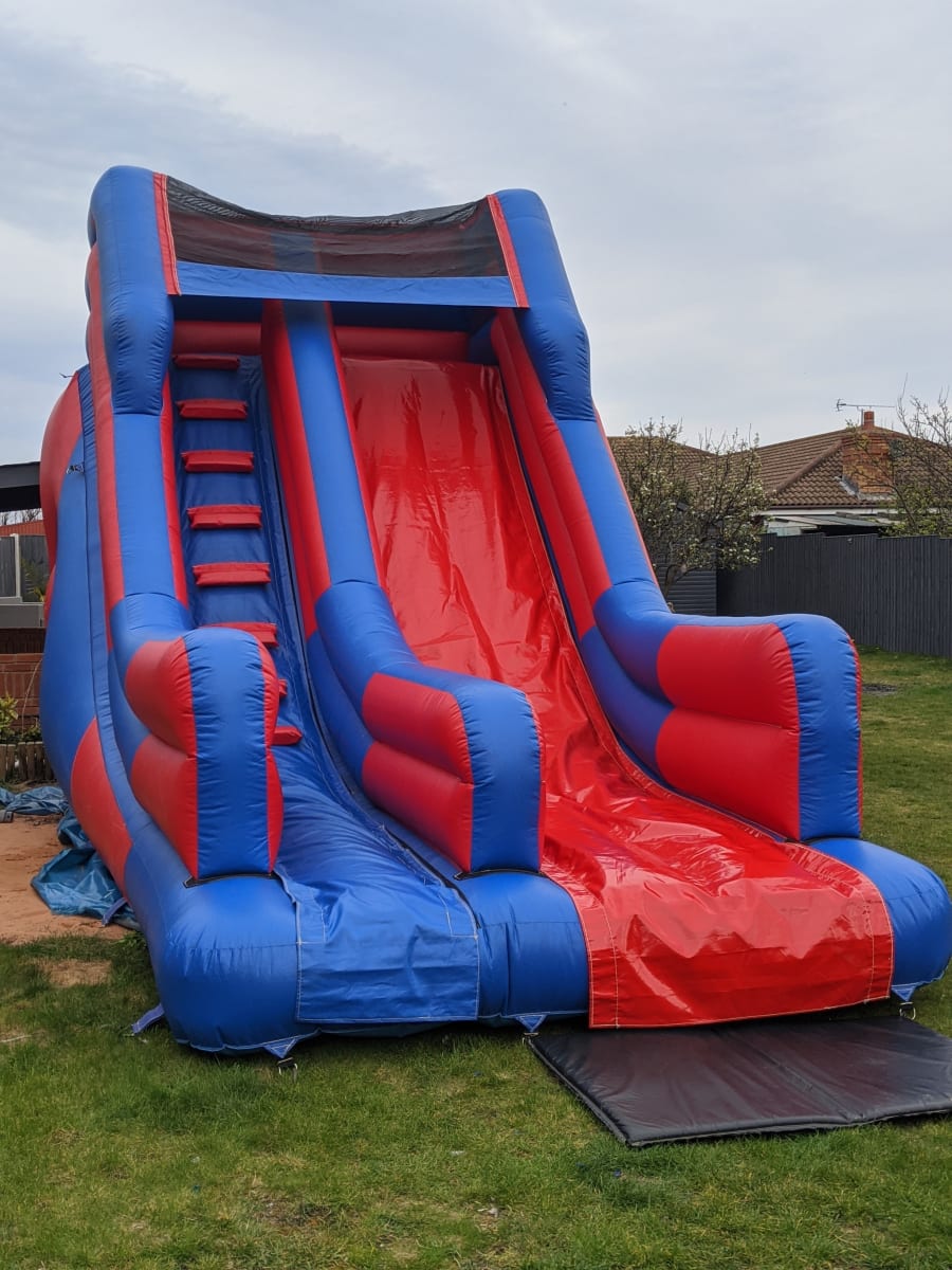 Elevate your party or event with the excitement and joy that our 10ft Platform Slide delivers! This vibrant red and blue inflatable slide is a must-have attraction for any gathering. Whether it's a birthday party, school event, or community fair, this slide promises endless fun and laughter. 🎈