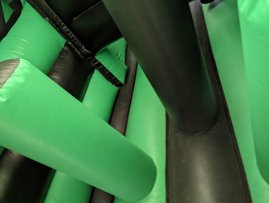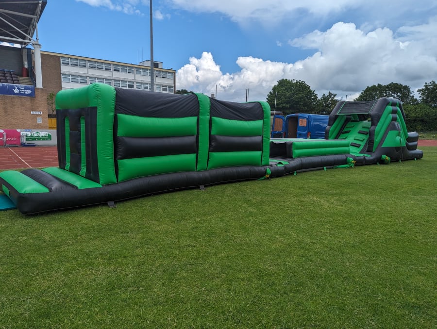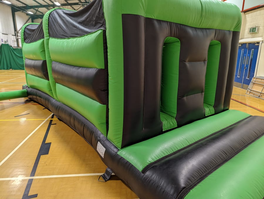 Three part assault course with plenty of obstacles to go over, under and pass through then on to a 15ft crawl through and finally on to a six foot up and over.