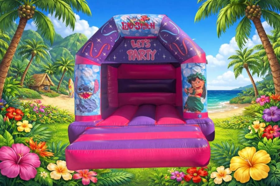 Bouncy Castle Hire 10ft x 12ft Pink Lilo & Stitch Castle in Denbighshire, Flintshire, Conwy, Wrexham, Cheshire is the perfect focal point for kids' parties and family events. This 10ft x 12ft pink castle delivers safe bouncing, vivid colours, and a beloved Lilo & Stitch theme. It’s designed for ages 3–12 and fits most garden spaces. Book fast to secure your date. 🌟