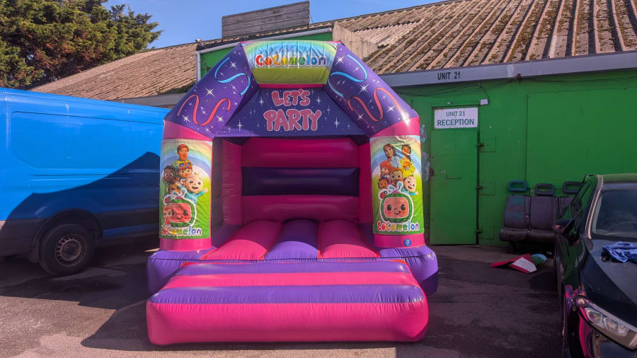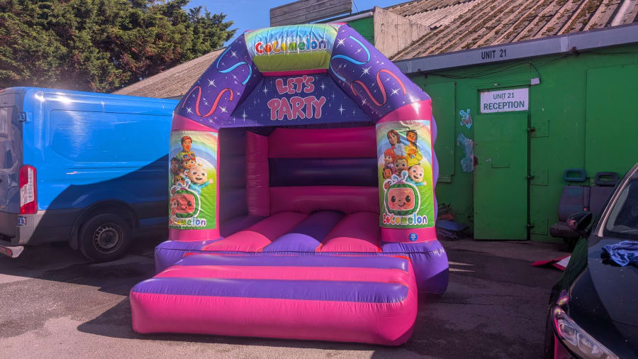 Bouncy Castle Hire 10ft x 12ft Pink Cocomelon Castle in Denbighshire, Conwy, Flintshire, Cheshire, Wrexham — Bright. Safe. Crowd-pleasing. This themed inflatable is sized for toddlers and young children. It offers a colourful Cocomelon design, roomy bounce area, and easy setup for parties, nurseries, and family events. 🎈🎉
