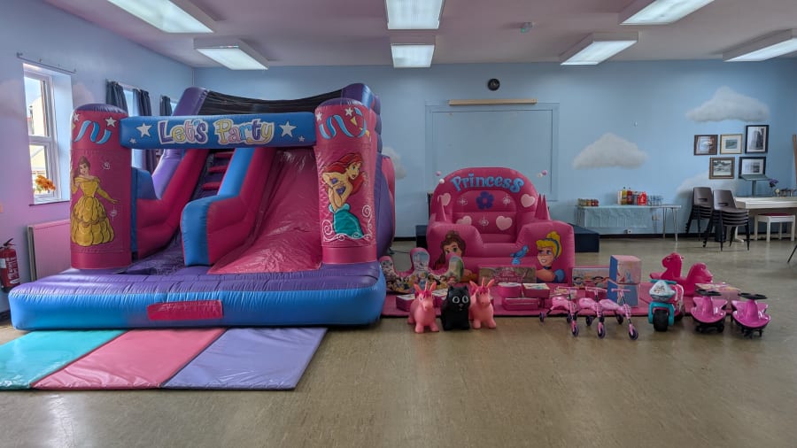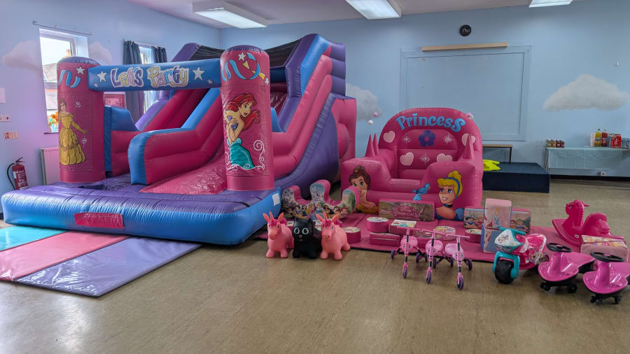 Soft Play Hire Disney Princess 5.6ft Slide Soft Play Package in Flintshire, Denbighshire, Conwy, Wrexham, Cheshire. This themed soft play bundle delivers magical entertainment for birthdays, christenings, and family events. Safe. Bright. Eye-catching. Perfect for ages 1–8. Families and party planners love the princess theme and the 5.6ft slide for extra excitement. ๐