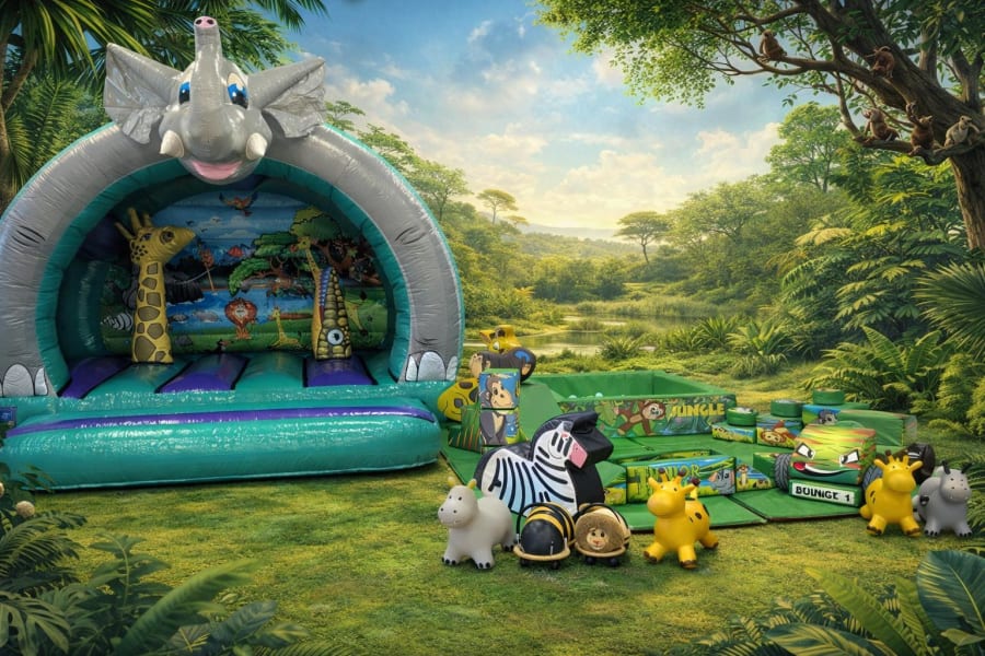 - Jungle Themed 3D Bouncy Castle: The star attraction, featuring bright colors and playful animal designs for endless bouncing fun.