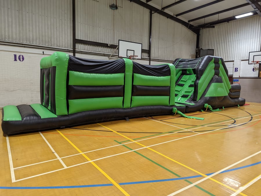 Two part assault course with plenty of obstacles to go over, under and pass through and a six foot up and over.